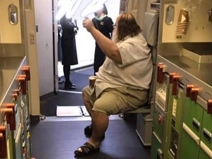 Red flag number two was raised when this disgusting fat body got to the lavatory and told the flight attendants that due to an injured right arm, he needed assistance getting his obese butt onto the toilet. Again, the flight attendants balked, but gave in. The guy then tells the flight attendant that she needs to keep the door open! On a plane! So he can get some “circulation” while HE POOPS ON THE PLANE! This is one request too many and the flight attendant says no.